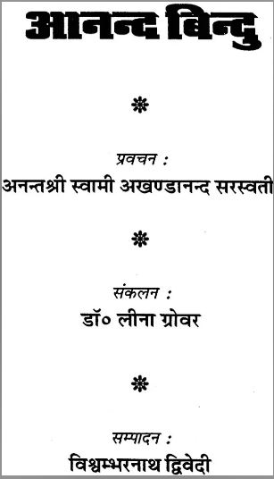 Anand Bindhu / आनन्द बिन्दु: Anand Bindu By Swami Akhandanand Saraswati ji Maharaj ( Sat Sahitaya Prakashan )